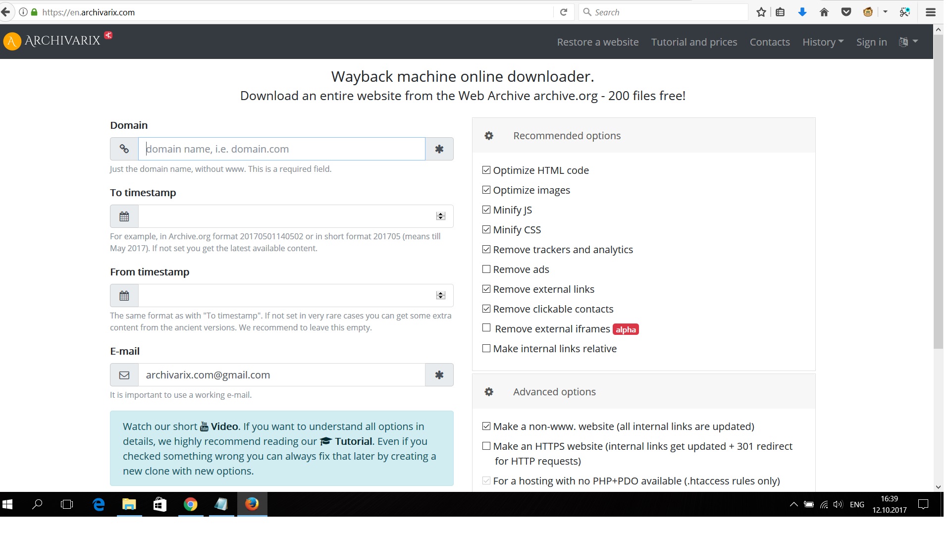 Archivarix online wayback downloader. Download a web site from web.archive.org. Restore entire site exactly like it was on Wayback machine.
