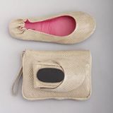 Foldable ballet flats that fit in your purse! Matching expandable tote bag for those 'killer' heels
