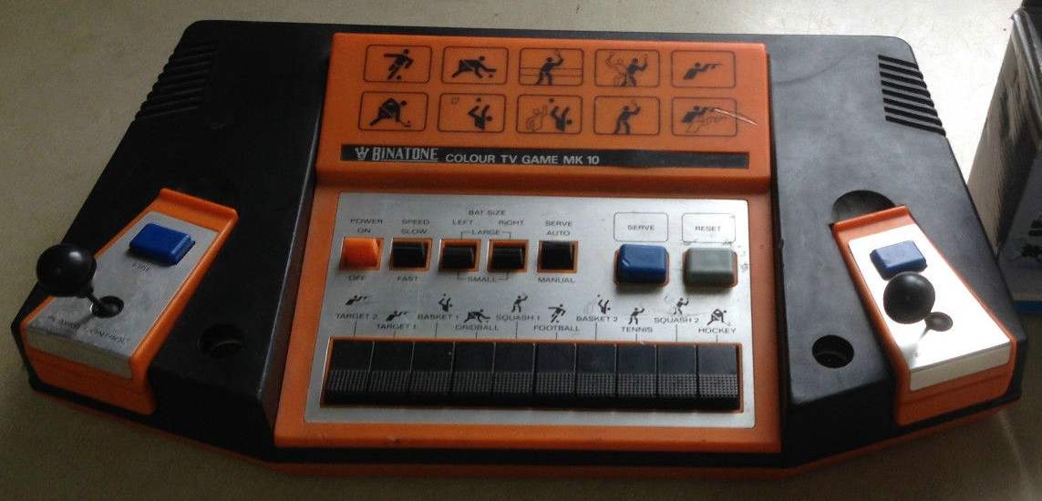 This pong is one of the many Binatone systems. As its name indicates, it offers 10 games : 8 pong games (basket 1, basket 2, gridball, squash 1, squash 2, football, tennis, ice hockey) and 2 shooting games (target 1, target 2). It is the last Binatone pong marketed.