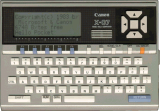 The Canon X07 was very popular. The RAM could be extended thanks to small cards (which looked like credit cards), although these cards were very expensive. ROM cards were also available for professional applications.
