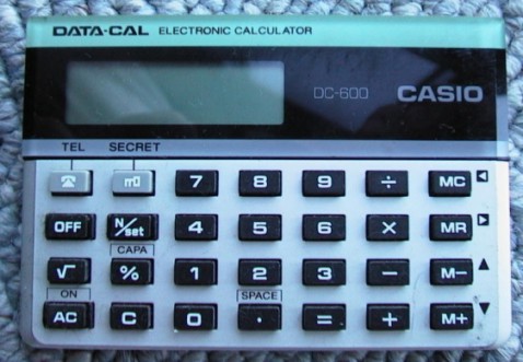 The Casio DC-600 DATA CAL is an arithmetic calculator with 8 digits precision and algebraic logic. It has 6 functions, 32 keys and an LCD (liquid crystal) display. The power source is 3V cell. The calculator was manufactured in Japan.