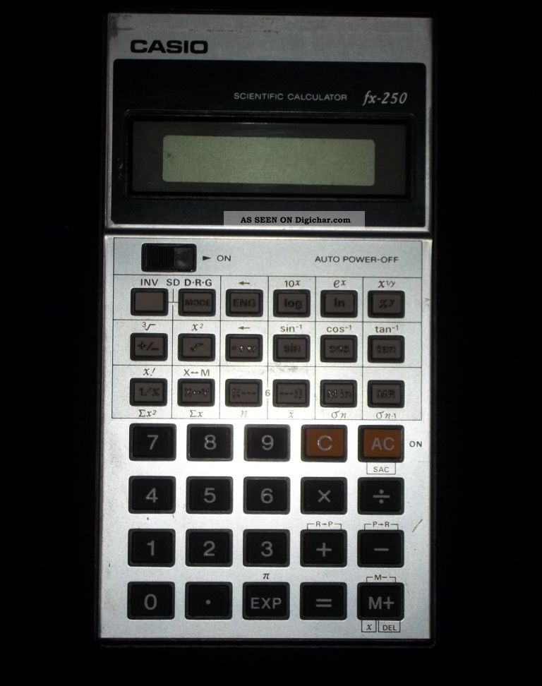 The Casio fx-250 is a scientific calculator with 8 digits precision and algebraic logic. It has 44 functions, 38 keys and an LCD (liquid crystal) display.