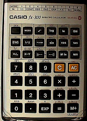 The Casio fx-300 is a scientific calculator with 9 digits precision and algebraic logic. It has 45 functions, 38 keys and an LCD (liquid crystal) display.