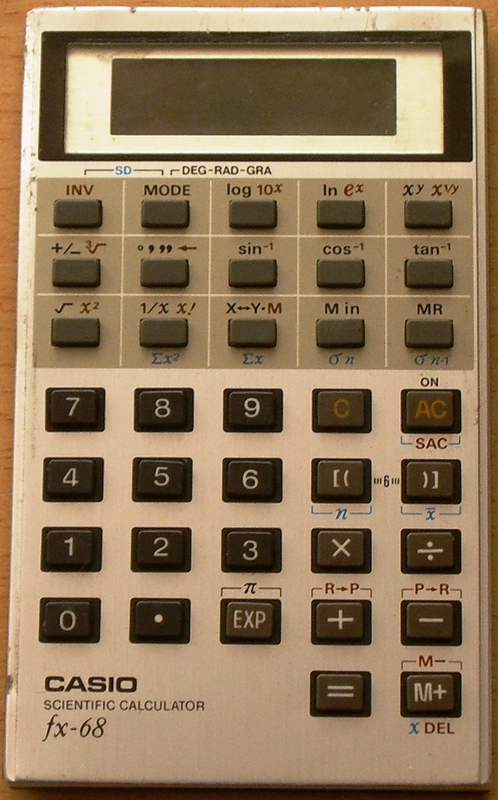 The Casio fx-68 is a scientific calculator with 9 digits precision and algebraic logic. It has 32 functions, 37 keys and an LCD (liquid crystal) display.