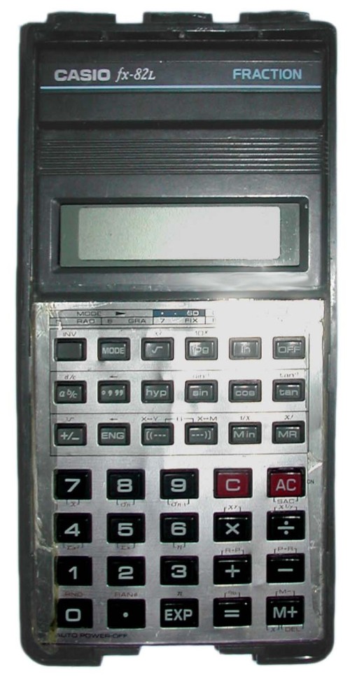 The Casio fx-82L FRACTION is a scientific calculator with 8 digits precision and formula input logic. It has 54 functions, 38 keys and an LCD (liquid crystal) display. The power source is 2xAA batteries.