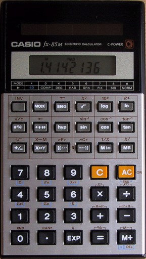 The Casio fx-85M is a scientific calculator with 8 digits precision and algebraic logic. It has 55 functions, 38 keys and an LCD (liquid crystal) display.