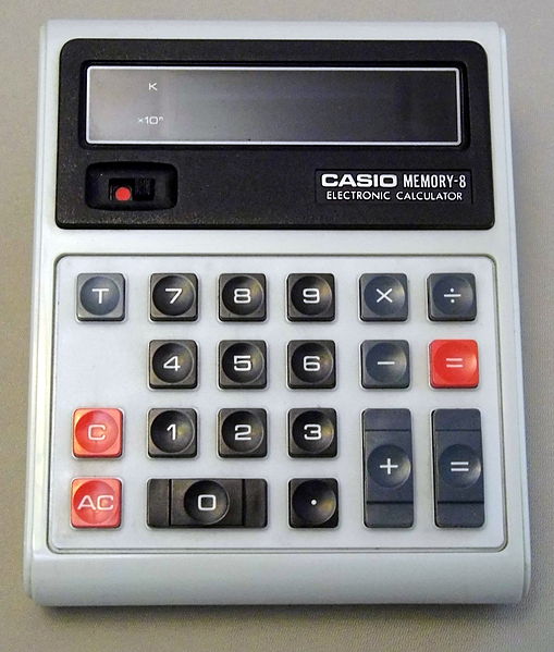 The Casio MEMORY-8 is an arithmetic calculator with 8 digits precision and algebraic logic. It has 4 functions, 20 keys and a VFD (vacuum fluorescent) display.