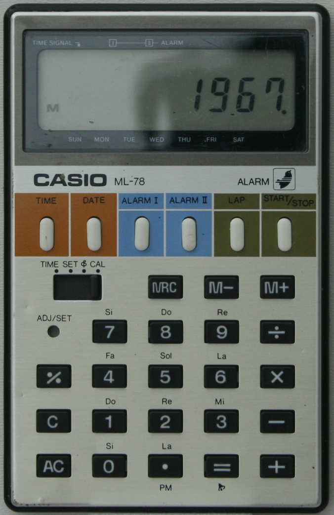 The Casio ML-78 is an arithmetic calculator with 8 digits precision and algebraic logic. It has 5 functions, 29 keys and an LCD (liquid crystal) display. The power source is 3V cell.