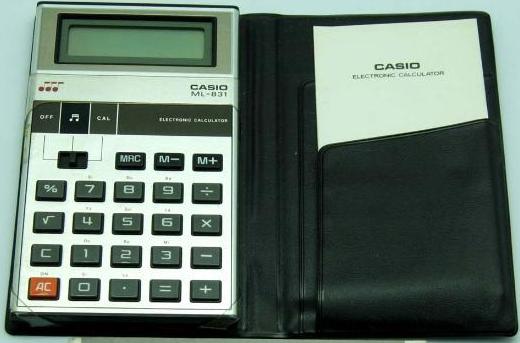 The Casio ML-831 is an arithmetic calculator with 8 digits precision and algebraic logic. It has 6 functions, 23 keys and an LCD (liquid crystal) display.