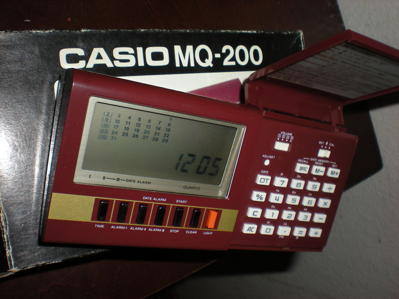 The Casio MQ-200 is an arithmetic calculator with 8 digits precision and algebraic logic. It has 5 functions, 31 keys and an LCD (liquid crystal) display. The power source is 3xAA batteries. The calculator was manufactured in Japan.