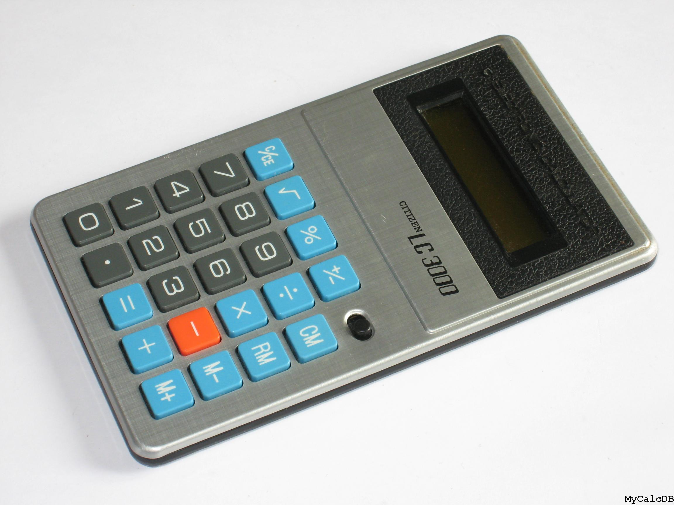 The Citizen LC3000 is an arithmetic calculator with unknown digits precision and algebraic logic. It has an unknown number of functions, unknown keys and an LED (light-emitting diode) display, typical of calculators of this era.