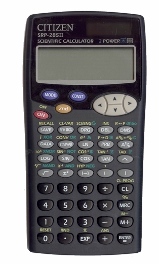 The Citizen SRP-285II is a programmable calculator with 10 digits precision and formula input logic. It has an unknown number of functions, unknown keys and an LCD (liquid crystal) display.