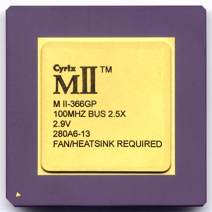 After Cyrix was purchased by National Semiconductor in 1997 they terminated their foundry agreement with IBM. National fabricated their own chips and the 6x86MX was re-named MII. Compared to early 6x86MX CPUs the MII had some enhancements to its processor core. Heat output was reduced allowing it to rise to clock speeds over 220MHz. The MII also required non-standard bus speeds at 75 or 83MHz on socket 7 boards and therefore had some troubles with stability.