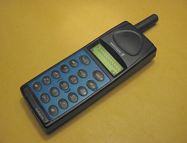 The Ericsson GA628 was the first phone you could easily customize. Every new Ericsson GA628 came with four different front panels in green, yellow, blue or red.