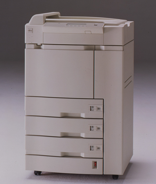 The F6671A and F6677C, announced in February 1992, were distributed printers that connected to Fujitsu M series machines. They were compact, high-speed printers designed to fulfill the need for onsite printing using print data generated at a central system