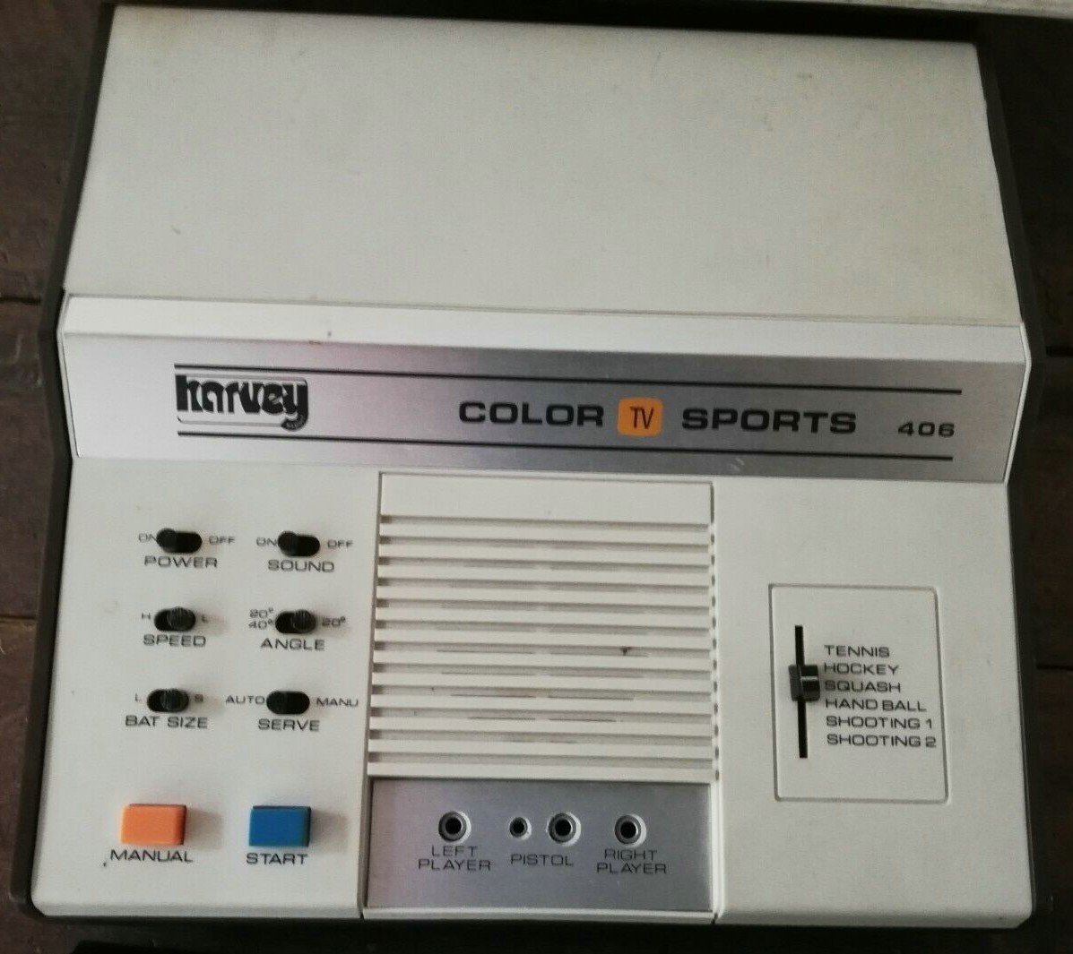 Harvey Colour TV Sports 406 is a pong console released in 1977. It can play six games and it comes with a light gun.