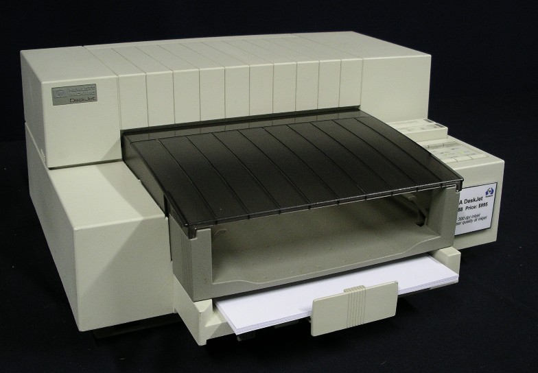 The HP DeskJet was a major breakthrough in inkjet printing. The lab name for the original 300dpi inkjet printer was "Voodoo". It printed on plain paper and offered "laser quality" (300dpi) output. Best of all it was priced at less than half the cost of a laser printer. The DeskJet was a hit; it was the next best thing to a personal laser printer. The DeskJet did have its limitations: its print quality was "fuzzy" when compared to a laser printer, it was big, and the ink was not waterfast - it was easily smeared with moisture (eg highlighting pen, coffee cup).