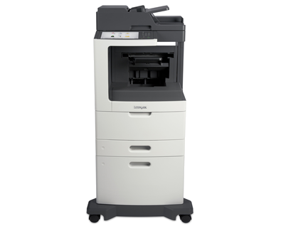 The Lexmark MX811dxfe MFP with a customizable e-Task touch screen, staple finisher, 2,750-sheet standard input, 1GB of expandable memory and 160+GB hard disk provides print, copy, fax, email and scan functions.