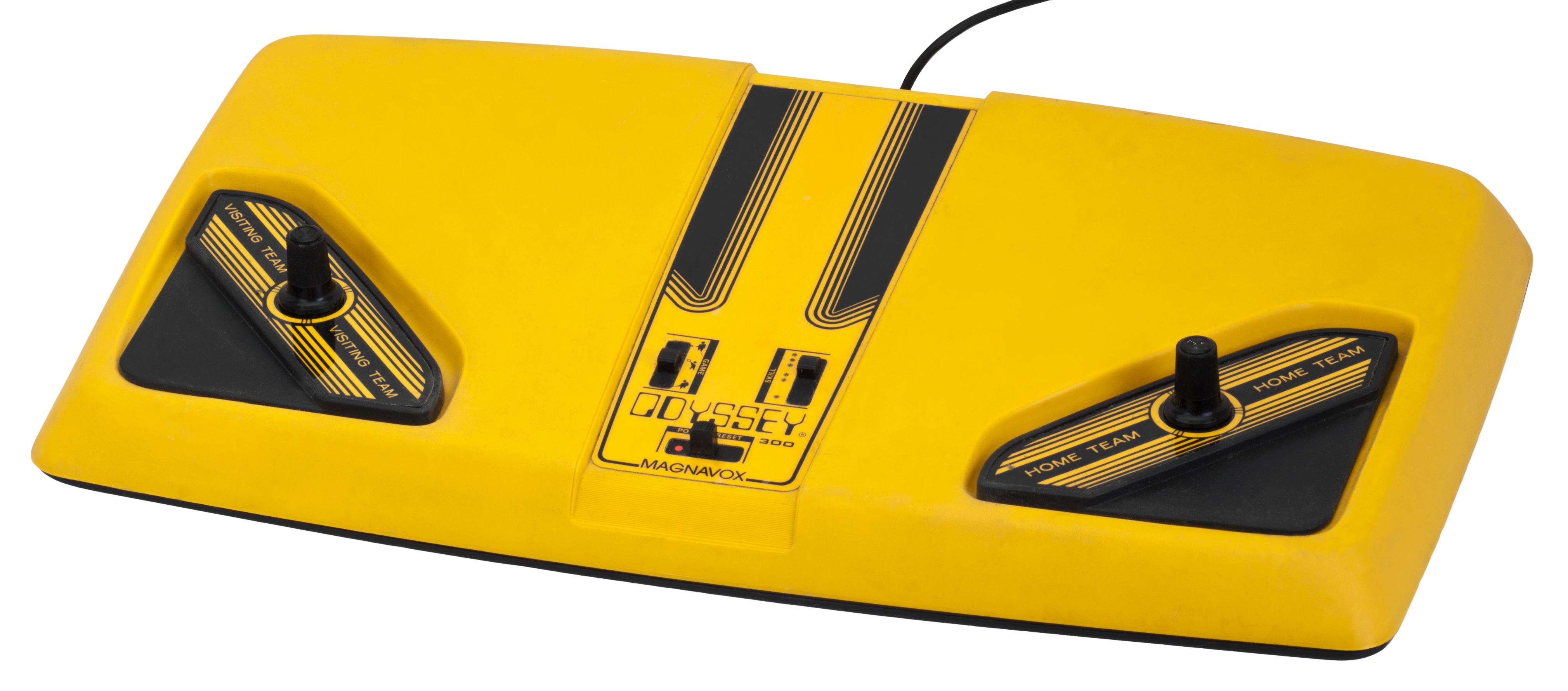 The Magnavox Odyssey 300 dedicated console was released in October 1976 for US$69. Unlike Magnavox's previous two dedicated console products, the Odyssey 300 was meant to compete directly with the Coleco Telstar. Like the Telstar, the Odyssey 300 uses the AY-3-8500 chip as its logic and was among the first dedicated consoles to use a single IC chip as the focus of its design rather than multiple computer chips or transistor–transistor logic. The Odyssey 300 has the same three games as the Odyssey 200, although, owing to its usage of the AY-3-8500, their gameplay more closely resembles Atari's Pong than Magnavox's previous games; horizontal control was absent, ball angle was automated, and the games are controlled with a single dial instead of three. Unlike the 200, the Odyssey 300 console has three difficulty levels: Novice, Intermediate, and Expert. Also owing to its implementation of the AY-3-8500, the 300 introduced digital on-screen scoring.