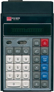 The Sharp EL-2110 ELSIMATE is an arithmetic calculator with 12 digits precision and algebraic logic. It has 7 functions, 21 keys and a VFD (vacuum fluorescent) display.