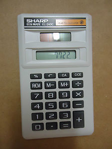 The Sharp EL-243C ELSIMATE is an arithmetic calculator with 8 digits precision and algebraic logic. It has 6 functions, 23 keys and an LCD (liquid crystal) display.