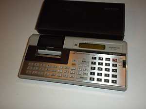 The Sharp EL-7001 MEMOWRITER is an arithmetic calculator with 10 digits precision and algebraic logic. It has an unknown number of functions, 54 keys and an LCD (liquid crystal) display. The power source is 4xAA batteries.