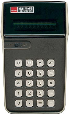 The Sharp EL-8000R ELSIMATE is an arithmetic calculator with 8 digits precision and algebraic logic. It has 6 functions, 20 keys and a VFD (vacuum fluorescent) display. The power source is 4xAA batteries.
