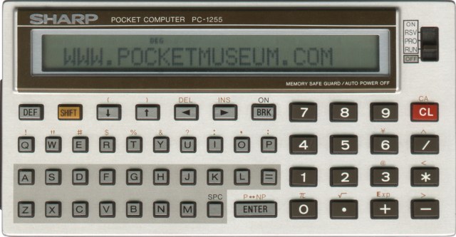 The Sharp PC-1255 is a programmable calculator with 12 digits precision and formula input logic. It has an unknown number of functions, 52 keys and an LCD (liquid crystal) display. The power source is 2xCR2032 3V.