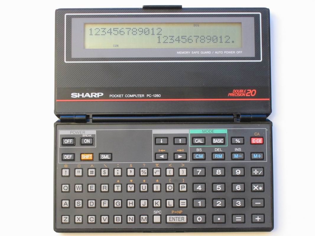 The Sharp PC-1280 is a programmable calculator with 10 digits precision and algebraic logic. It has an unknown number of functions, 72 keys and an LCD (liquid crystal) display. The power source is 3xCR2032 3V.