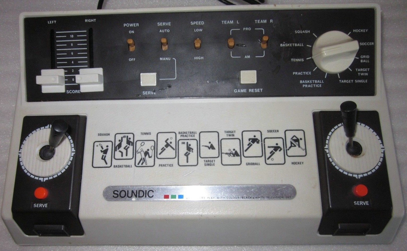 Soundic SD-061 was released in Hong Kong 1978. The SOUNDIC SD-061 has got 10 sport games: Squash, Basketball, Tennis, Practice, Basketball Practice, Target Single, Target Twin, Gridball, Soccer and Hockey, similar as “Video Olympics”, or better known as “Pong” from Atari. The console itself and the game paddles work great!