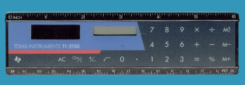 The Texas Instruments TI-2150 is an arithmetic calculator with 8 digits precision and algebraic logic. It has 7 functions, 24 keys and an LCD (liquid crystal) display. The power source is Solar. The calculator was manufactured in Taiwan.