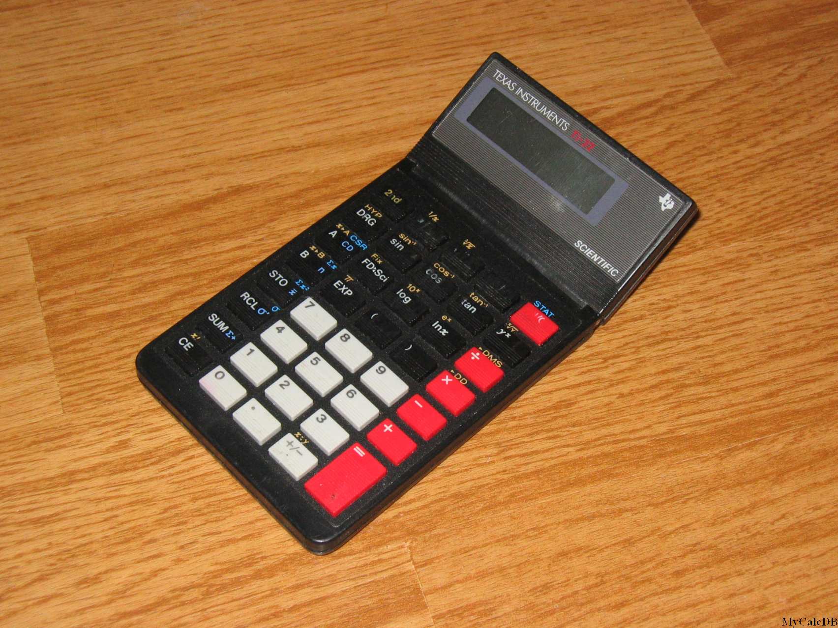 The Texas Instruments TI-32 is a scientific calculator with 8 digits precision and algebraic logic. It has an unknown number of functions, 39 keys and an LCD (liquid crystal) display. The power source is 2xLR44. The calculator was manufactured in Taiwan.