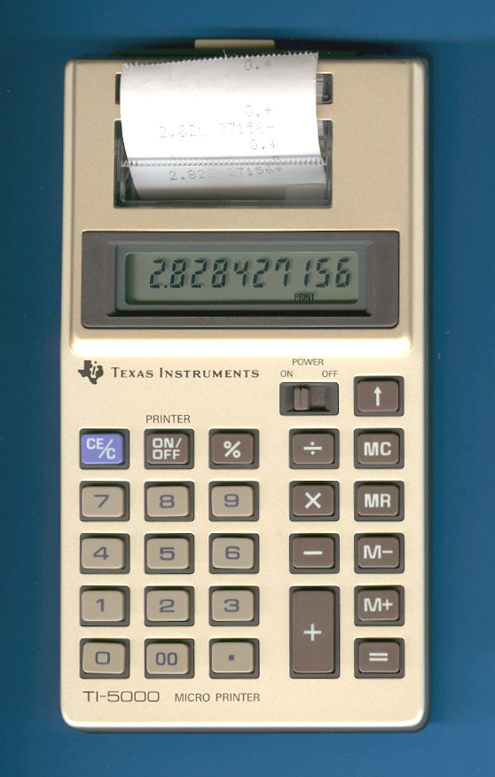 The TI-5000 started in 1982 a new generation of miniature printing calculators.The Texas Instruments TI-5000 MICRO PRINTER is an arithmetic calculator with 10 digits precision and algebraic logic. It has 6 functions, 25 keys and an LCD (liquid crystal) display. The power source is 4xAAA batteries. The calculator was manufactured in Japan.