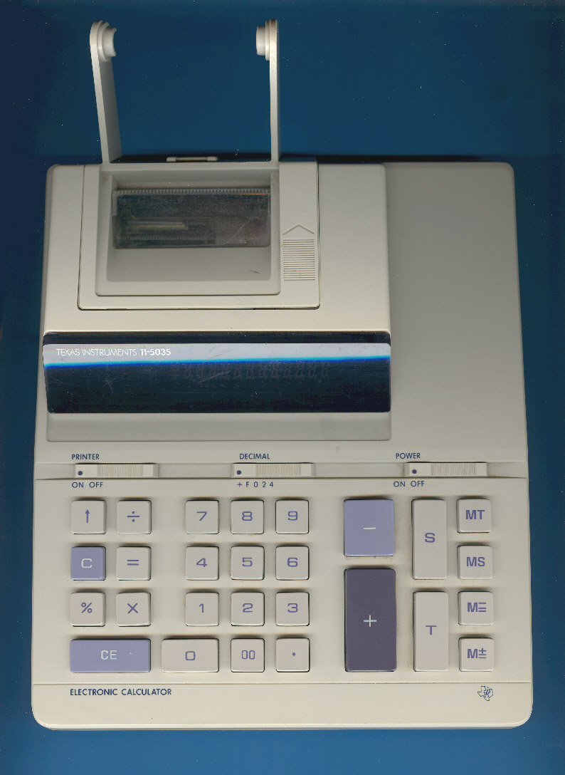 This TI-5035 is a sibbling of the TI-5030 II. The housing and internal construction of the original TI-5032 was used with a complete line of very similiar calculators.