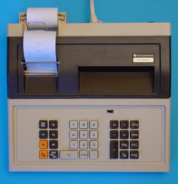 This huge desktop printing calculator is a sibbling of the neat TI-5220 based one the earlier TI-5040.The keyboard module is similiar to the TI-3500 introduced already in 1972 and the printer is borrowed from the PC-100 printing cradle sold together with the SR-52.