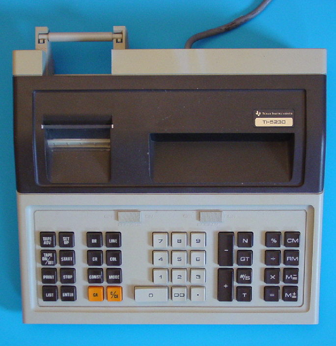 This rare TI-5230 seems to be an enhanced version of the TI-5225.The internal construction of the TI-5230 is a typical design of Texas Instruments.
