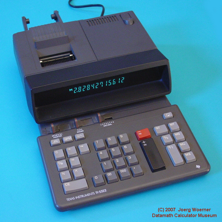 Texas Instruments introduced in 1989 with the TI-5322 and its sibbling TI-5332 two heavy-duty desktop printer / display calculators. Main differences between the two calculators is the 12-digit display. While the TI-5322 sports a traditional design, introduced the TI-5332 a novel, tiltable display for a more convenient reading position in POS applications. The design of both calculators matches perfect with the TI-5315 introduced already in 1988.