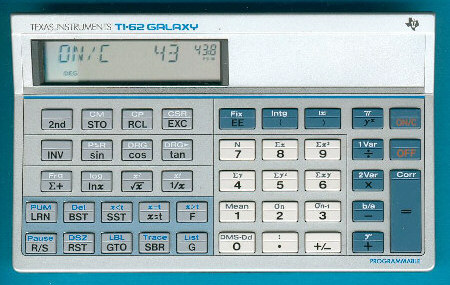 The TI-62 Galaxy is a quite interesting calculator within the Galaxy-line. In addition to the functions of e.g. a TI-37 Galaxy it adds the programmability of a TI-57-II.