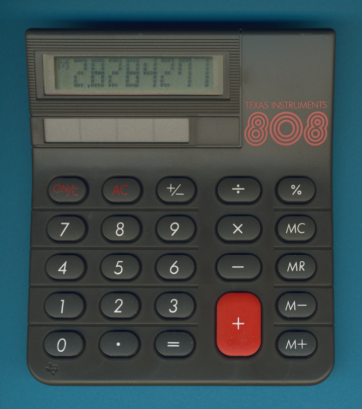 Texas Instruments introduced with the TI-808 a small desktop calculator with a dot matrix display. It looks today like a marketing gag, neither readability nor design of the numbers was enhanced to standard calculators like the TI-1795+.