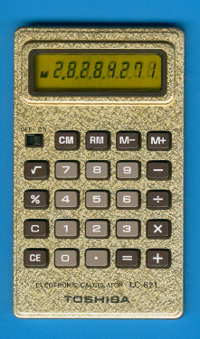 This wonderful Toshiba LC-821 was introduced already in 1977 and defined together with its successor LC-830 the standard design of a simple LCD calculator.